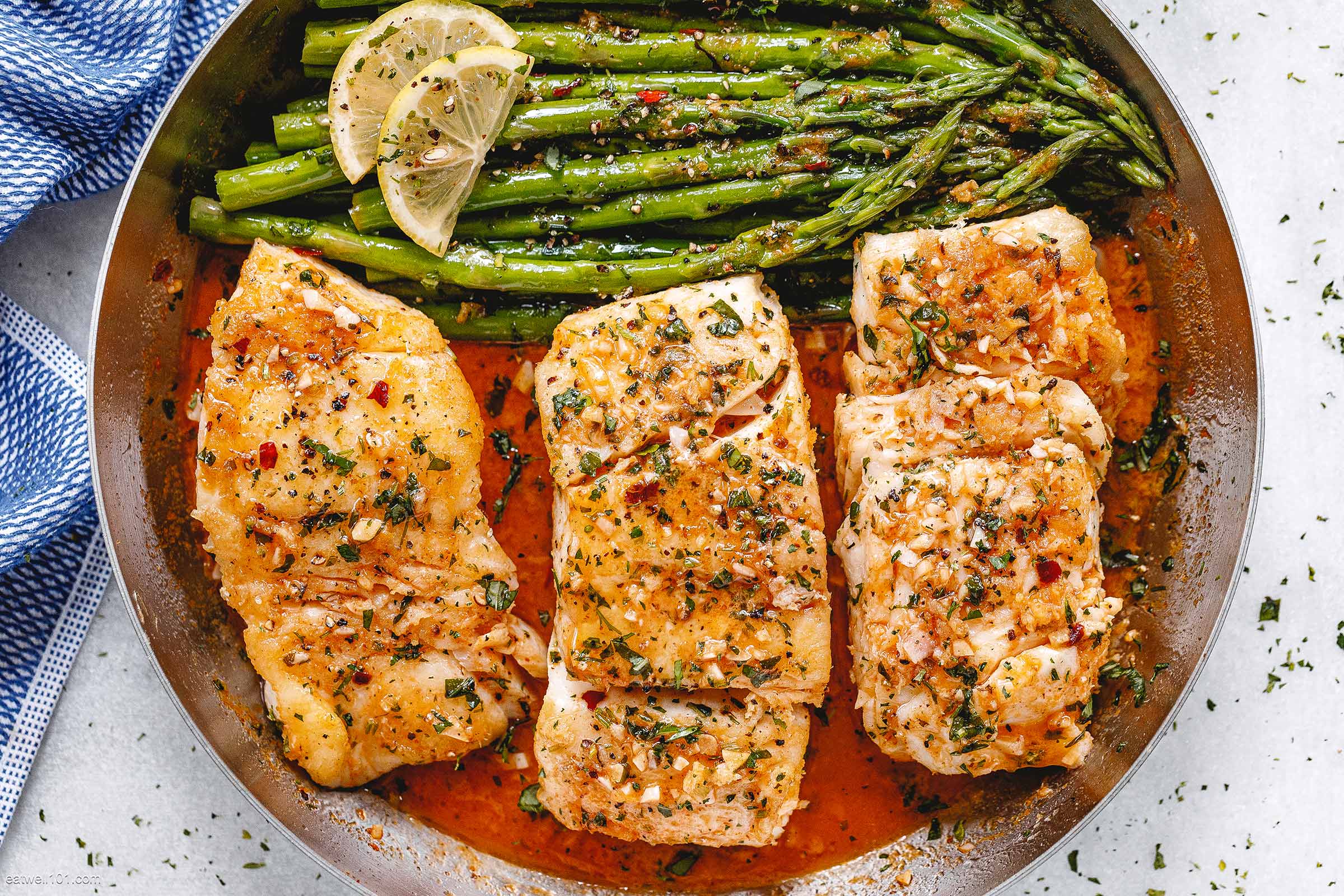 This tender and flaky Garlic Butter Cod Fillet is pan-seared to perfection and bathed in a rich garlic butter sauce with a squeeze of lemon. Simple, healthy, and full of flavor!