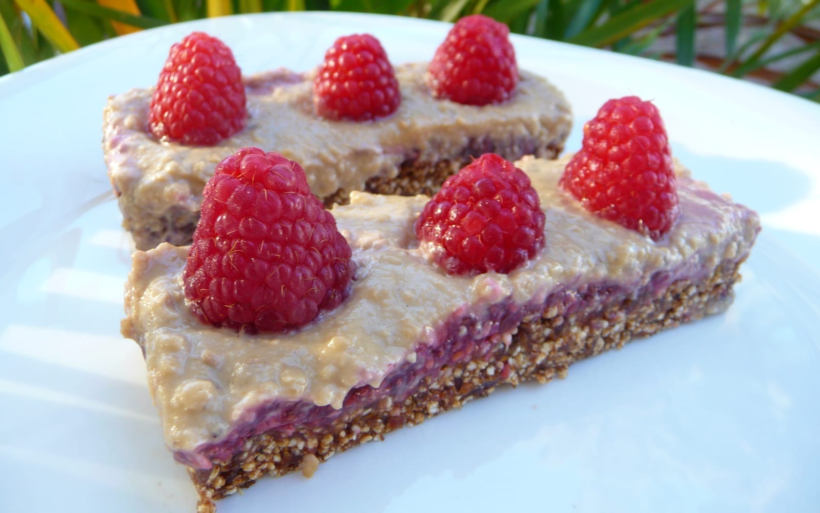 - Top with fresh raspberries and drizzle with raspberry jam. Chill for at least 2 hours before cutting into bars.